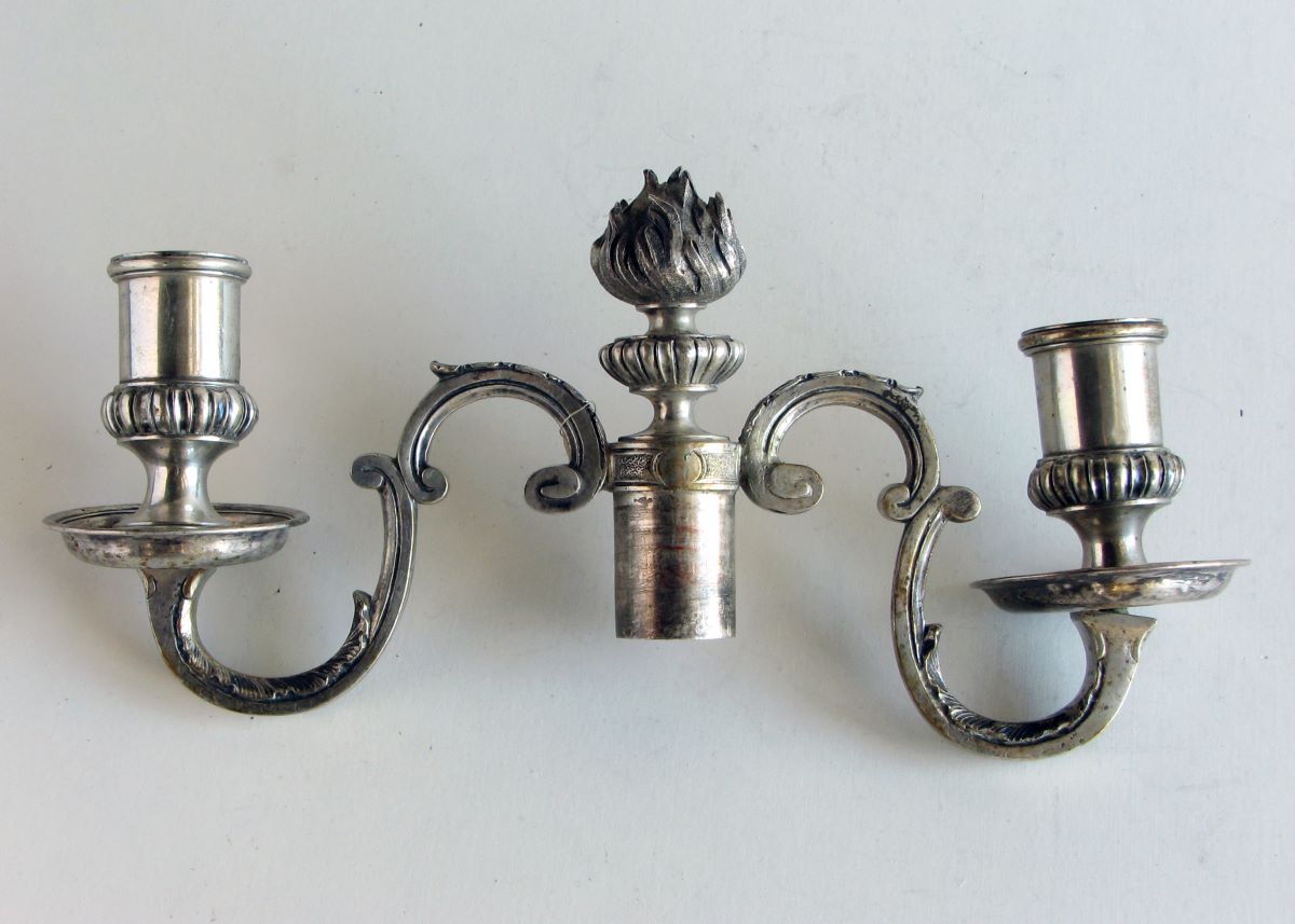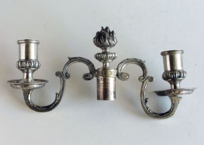 Description: Fragment de sfeșnic cu 2 brațe arcuite în „S” și buton tip flacără.