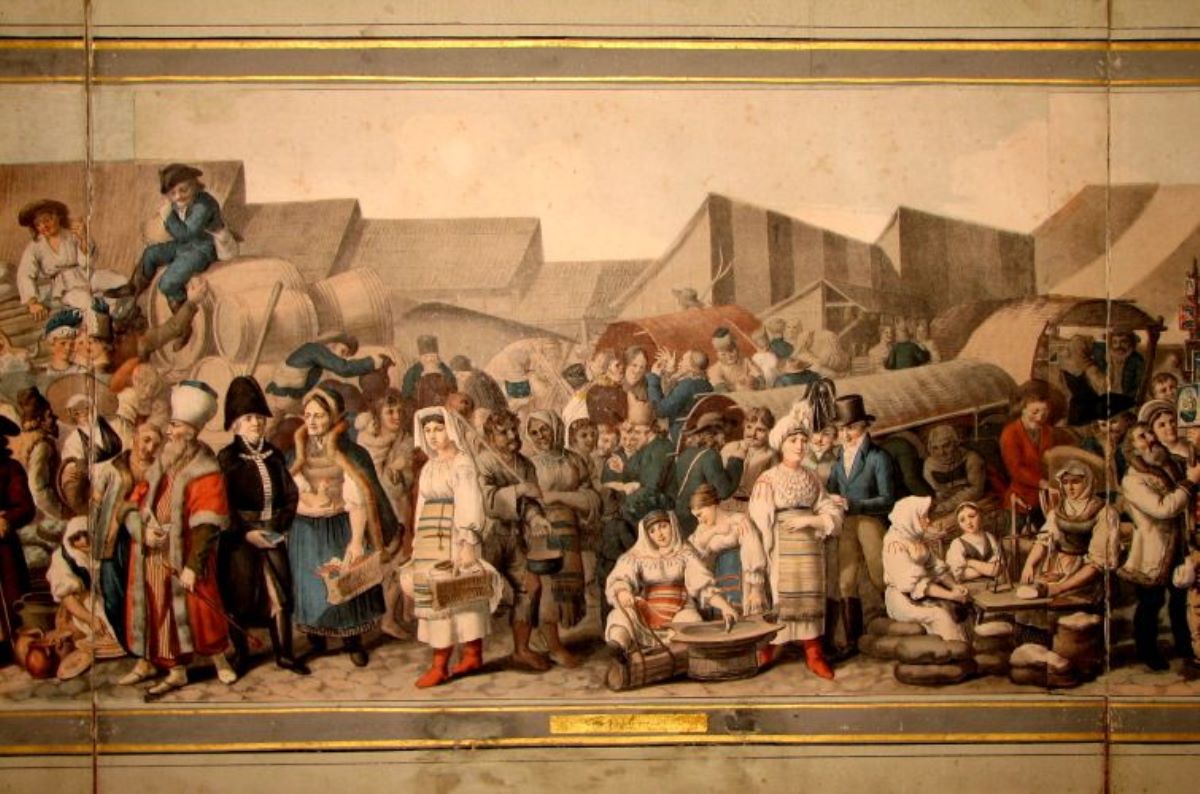 Descriere: Trei panouri asamblate, cu redarea unor secvențe surprinse la un târg din Transilvania, la începutul secolului XIX. Pictorul a fost preocupat să înregistreze cu minuțiozitate detalii pitorești, tipuri de transilvăneni, în costume specifice. Lucrarea reprezintă o sursă documentară importantă pentru istoria și etnografia transilvăneană.